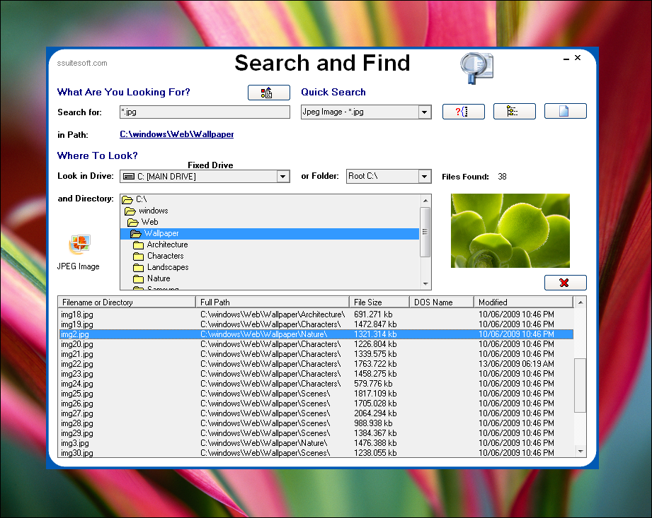 SSuite Desktop Search and Find is a useful windows desktop search engine that can find files, folders, and file content. This small application is also multi-threaded for instant search results. Advanced search features also included: search by content e.g. text, file size, date created, date accessed, and many more options...