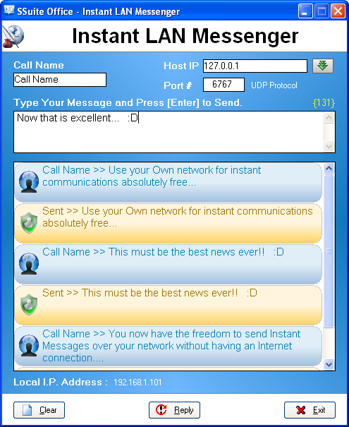 Improve communications in your company, student campus, home network, or even replace that old pabx system. SSuite IM Chat is designed to be an instant messaging software for use within small, medium and large Local Area Networks {LAN}, even Wi-Fi networks.
