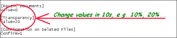 Set your transparency options in 10, 20, 30 etc. upto 90. Any higher than 90 and the whole application will become completely invisible.