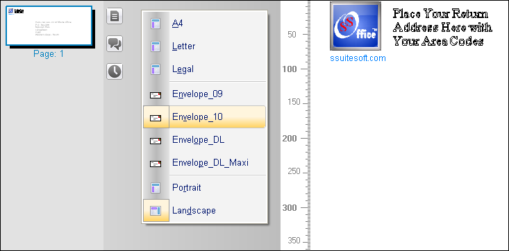 First after opening WordGraph you need to change the paper format to an envelope. In this example we will use a number 10 envelope size.